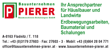 Bauunternehmen Pierer - Baumaschinen - Schalungen GmbH T. 118, 8163 Fladnitz , www.bauunternehmen-pierer.at |